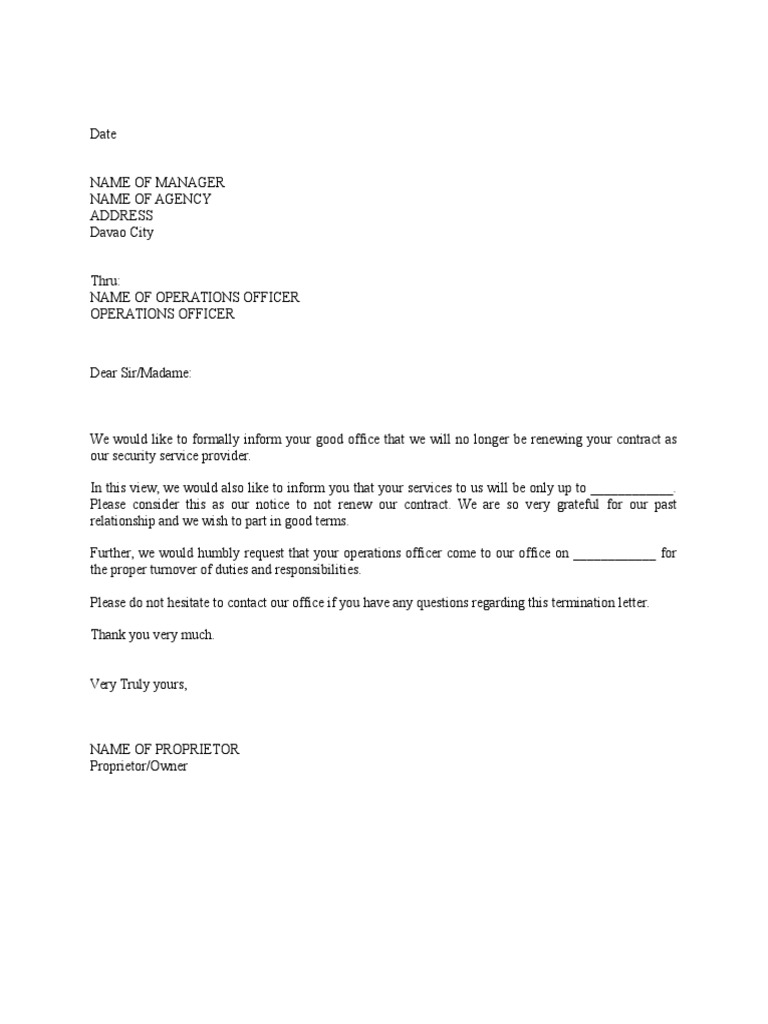 A contract outlines the full role and responsibilities of a position and provides a timeline of employment. Clarifies that the employee does not have the authority to enter into a contract on behalf of the employer unless there is written consent. As is the case with all letters, the style and wording you use in a letter depends on the specific circumstances. It should be signed by a manager or human resources official. Please accept this letter as a resignation notice that will resign from my position as the sale representative for pathways medics effective one week from today (september 8, 20xx). Use this sample insurance cancellation letter as a starting point for providing the insurance company with written notification of cancellation. Use appropriate tone in your letters, depending on your audience. A termination letter is a formal document written by an employer in order to tell an employee that their employment with the company is being terminated. An employment termination letter tells an employee that they have been relieved of their position with the company, with or without cause. Jan 06, 2021 · a lease termination letter is a notice that can be used to end a lease agreement early or to confirm that an expiring lease term will not be renewed. Send a letter of intent to indicate your intention on a particular matter. Create, print and download your free notice of termination for immediate use by answering a few easy questions. The reasons why the employment relationship may be ended.
